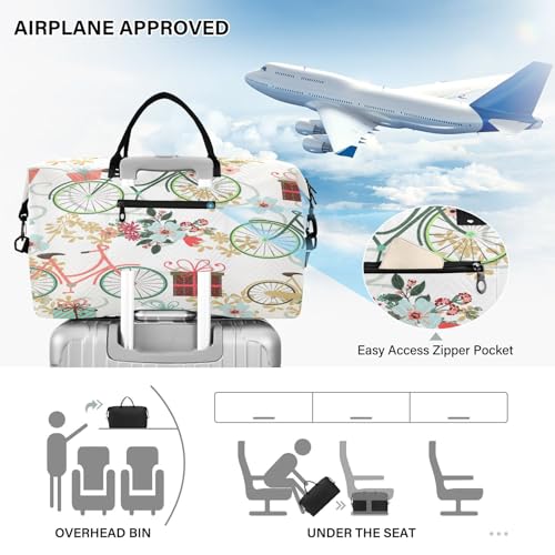 susiyo Funny Bicycles Flowers Expandable Travel Duffle Bag, Large Weekender Overnight Bags and Adjustable Strap, Carry On Shoulder Tote Bag, Gym Duffel Bag with Toiletry Bags for Hospital 6