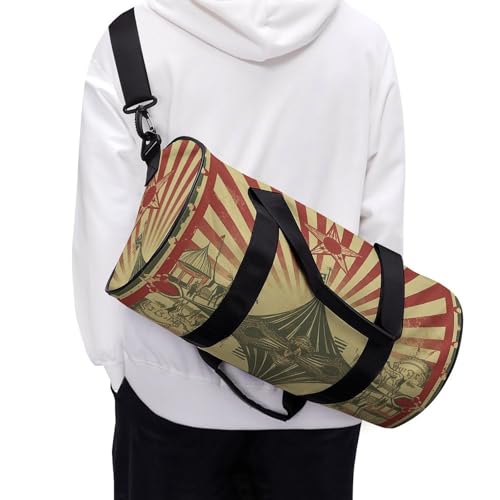 • HIGH QUALITY: Vintage Circus Background cylinder bags is made of durable nylon fabric, water-resistant surface and linings with good breathability.Tote travel bag has been well stitched and reinforced at all stress points, and the zipper opens and closes smoothly. And sports duffle bag uses light and waterproof cloth, which is very suitable for travel and daily use.