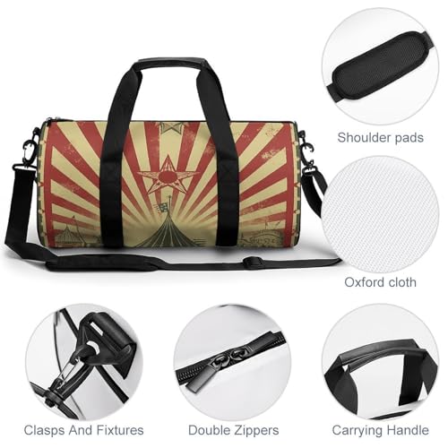 HOT ! Duffel Bag for Men Women Gym Bag Vintage Circus Background Travel Duffel Bag Waterproof Overnight Bag for Sports Workout