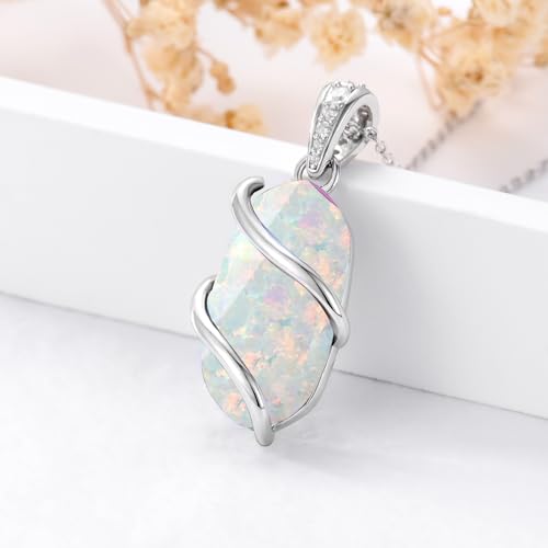 • 【Opal Necklace】White opal necklace made of 925 sterling silver. Lead and nickel free and suitable for those with sensitive skin. Pendant measures 1.15*0.6 inches on an 18+2 inch chain. October birthstone necklace.