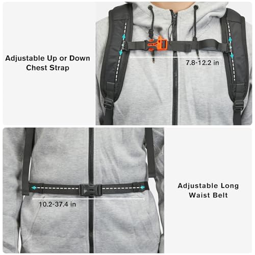 • Max Comfort: The soft padded mesh back panel and shoulder straps allows for air convection and heat elimination, providing maximum comfort even long treks, while the adjustable chest and waist strap stabilizes the load throughout the day