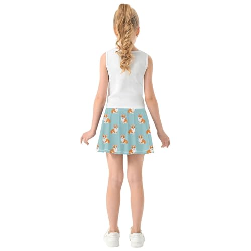 Girls Skorts with Built-in Shorts Cute Corgi Flowy Pleated Skirt for Kids with Pockets L 7