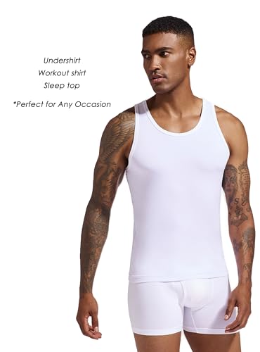 SlumberMee Mens Tank Tops Undershirts Viscose Made from Bamboo Soft Breathable Lightweight Cool Slim Fit A-Shirts Multipack 4
