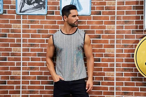 • Occasions: Men's disco shirts sleeveless tank tops, perfect for rave party, dance, nightclub, music festival, night out, stage performance, fitness, holiday, vacation, hip hop, dance wear, street wear, competition. Men's sequin tank top, hipster dance shirts.
