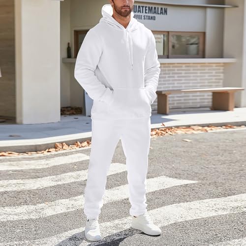 • Hoodies and sweatpants: Men 2 Piece Tracksuit Set. Hoodies featured with stylish solid color, basic, hooded with adjustable drawstring, kangaroo pocket, elastic ribbed cuffs, and stretchy hem provide optimal range of motion when exercising. Sweatpants is drawstring closure, relaxed leg, elastic waistband and ribbed hem, seal in warmth, 2 side pockets convenient for you to bring small things with you, like keys, phone.