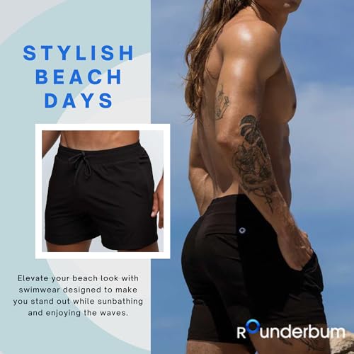 HOT ! Rounderbum Mens Swimwear | Beach Shorts | Padded Technology | Quick Dry | Bathing Suits | Sport Swim Shorts | Drawstring