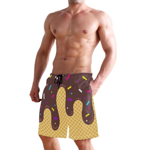 Men's Swim Trunks,Brown Ice Cream Quick Dry Swimming Board Shorts, Breathable Beach Swimwear Summer Swim Shorts with Pockets XX-Large 6