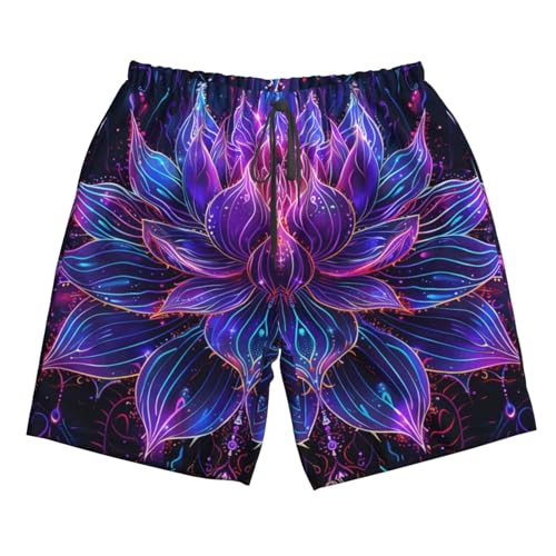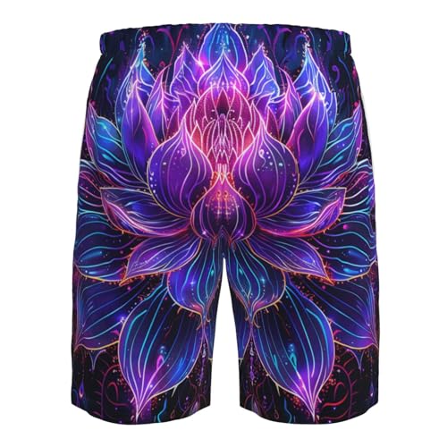 HOT ! Lotus Flower Energy and Spiritual Psychedelic Neon Purple Men's Quick Dry Swim Trunks Surfing Beach Mesh Board Shorts