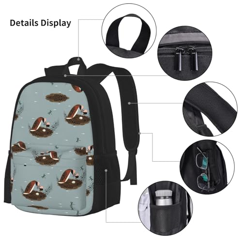 Bird Dragonfly Pattern Print 3 Piece Set Backpack, Lunch Bag, Pencil Case, Cute Sturdy For College And Travel 5
