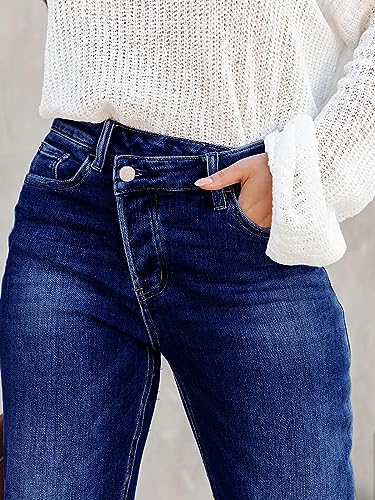 HOT ! PLNOTME Women's High Waisted Straight Leg Jeans Crossover Stretch Casual Cuffed Denim Pants