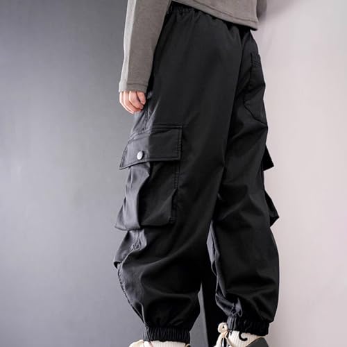 Girls Cargo Pants High Waisted Casual Sweatpants with Drawstring Loose Fit Comfortable Kids Tall Pants with 6