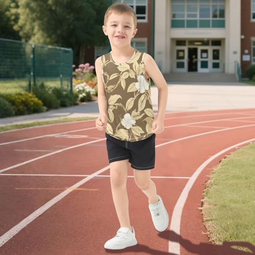 susiyo Retro White Flowers on Brown Boys Sleeveless Tank Top Girls Athletic T Shirt 6
