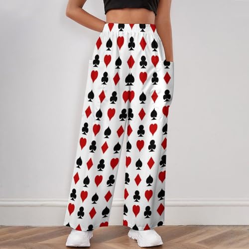 HOT ! Loose Fit Casual Playing Card Suit Casino Pattern Pants for Women Comfy Style