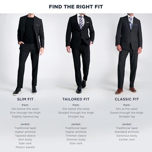 • SUIT JACKET: This reimagined tailored fit suit jacket brings the comfort you know and love while encompassing the technical design that makes this Haggar suit jacket one of a kind.
