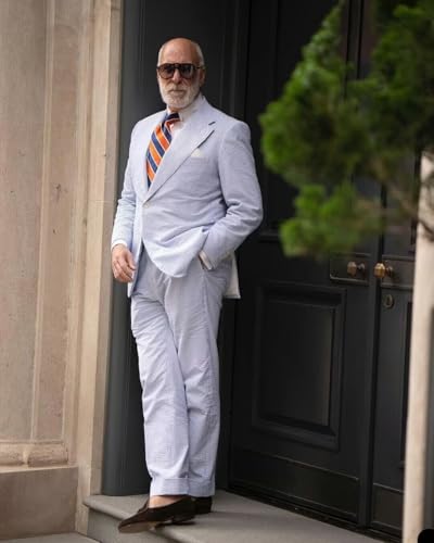SHUZHXLZANGY Mens Seersucker Suit 2 Piece Slim Fit Summer Suit for Wedding Striped Suit Prom Party 1