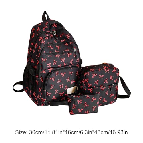 HOT ! Bow Backpack for Women Cute Kawaii 3Pcs Set Coquette Aesthetic Nylon Rucksack With Bow Pattern Aesthetic Daypack
