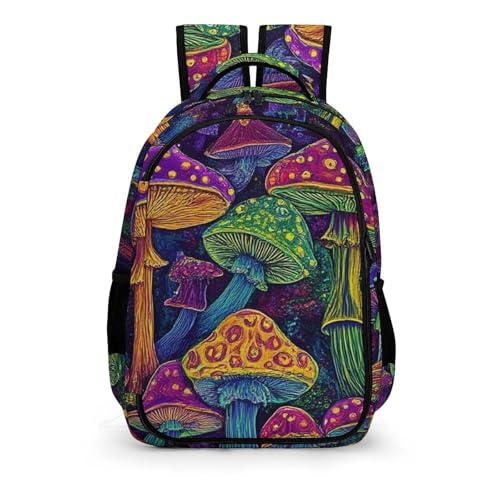 Backpack with Multi-Pocket, Men Women Trippy Mushrooms Art Novelty Portable Lightweight Shoulder Bag, Versatile Large Capacity Backpack 1