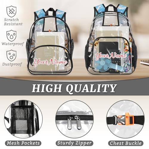 • PERSONALIZED CLEAR BAG: Each clear backpack strap is printed with exquisite patterns. Various patterns are available for you to choose from. Please click the "Customize Now" button and enter the name you want to customize