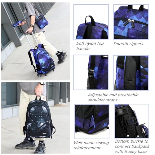 3Pcs Black Galaxy Rolling Backpacks for Boys Middle School Bags Trolley Elementary Bookbags on 6 Wheels 4