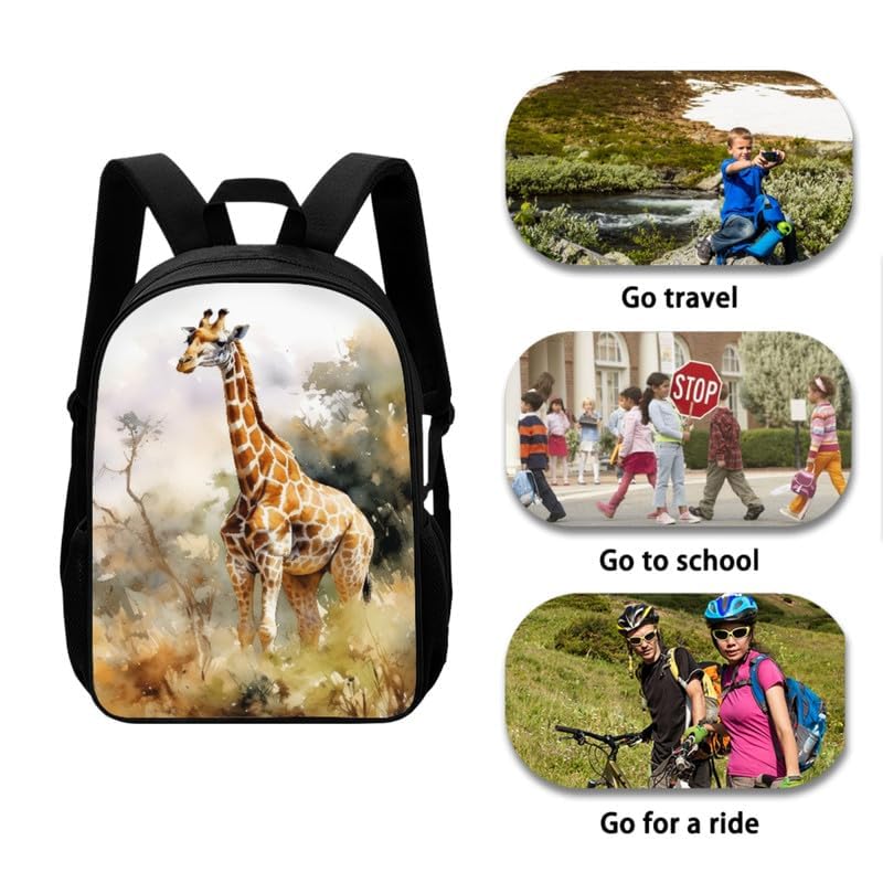 Watercolor Giraffe 17inch School Backpack for Students 3D Realistic Giraffe 3-in-1 Kids School Bag with Lunch Box Pencil Case Grassland Animal Primary Junior Bookbag 7