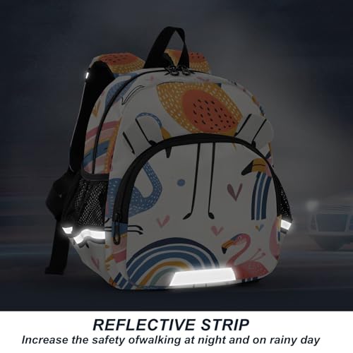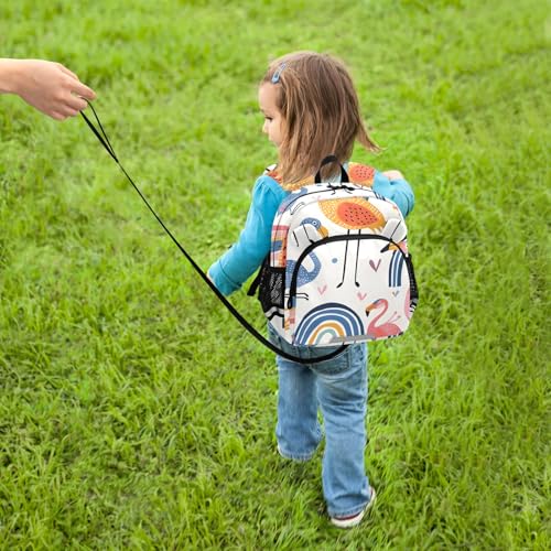 Kid's Backpack for Boys & Girls Toddler Bag Rainbow Bridge and Flamingos Backpack with Safety Leash 6