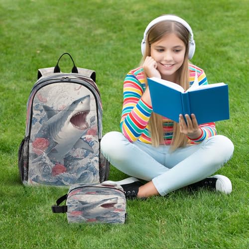 ALAZA Shark with Roses Kids Backpack Elementary Girls Boys Bookbag Rucksack Primary School Bag Backpack Set with Lunch Bag 1