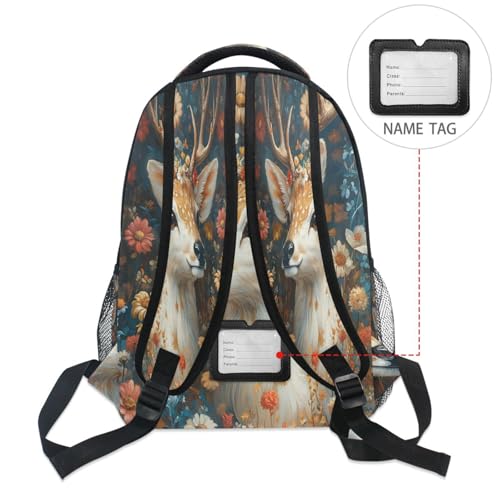Colorful Deer Blossom Reindeer Flower Backpack for School Boys Girls Adults Kids Bookbag Laptop Bag 18L 1