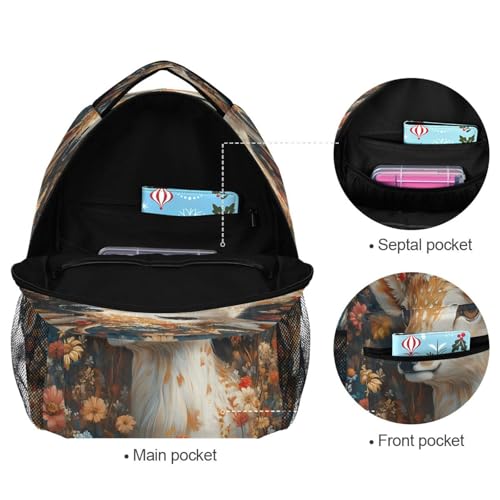 Colorful Deer Blossom Reindeer Flower Backpack for School Boys Girls Adults Kids Bookbag Laptop Bag 18L 7