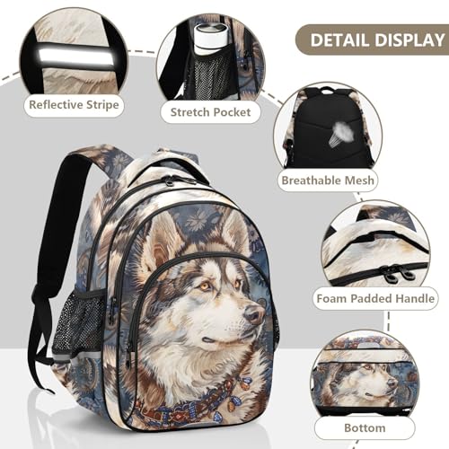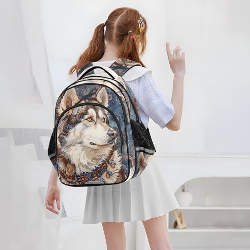 Husky Dog Ethnic Style Backpack for Kids 8-14 Years Boys Girls School Bookbag Daypack M 202b5552 1
