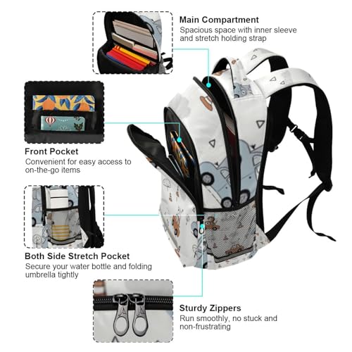 Animals Driving Trunk Kid's Elementary Middle School Backpack for Son Daughter, Age 6-12 Back to School Backpack Bookbag Schoolbag for Boys Girls 4