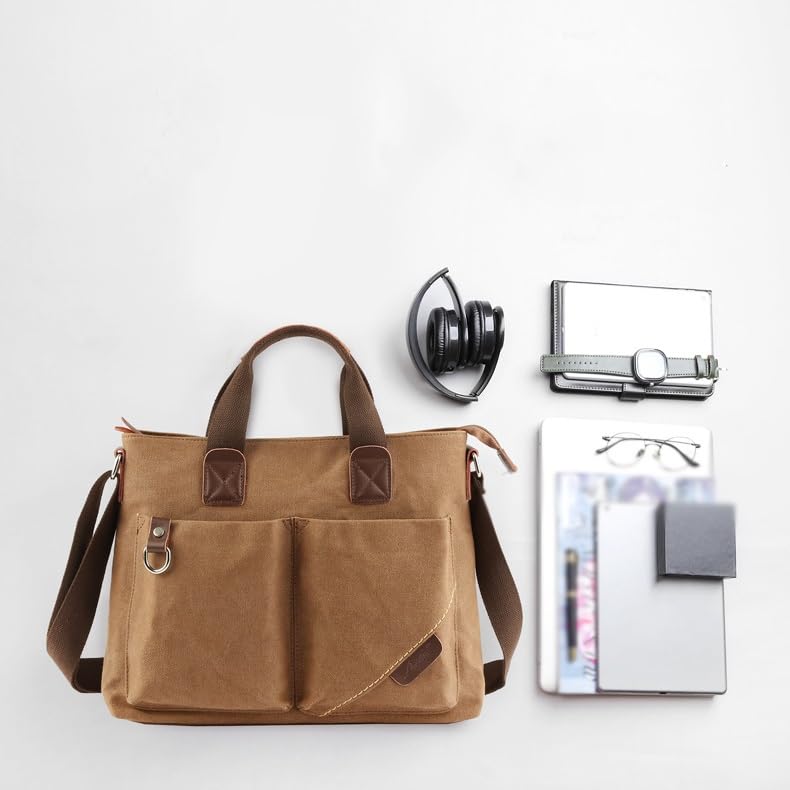 Men Washable Canvas Bag Leather Briefcase Travel Suitcase Messenger Shoulder Tote Pack Handbag 7