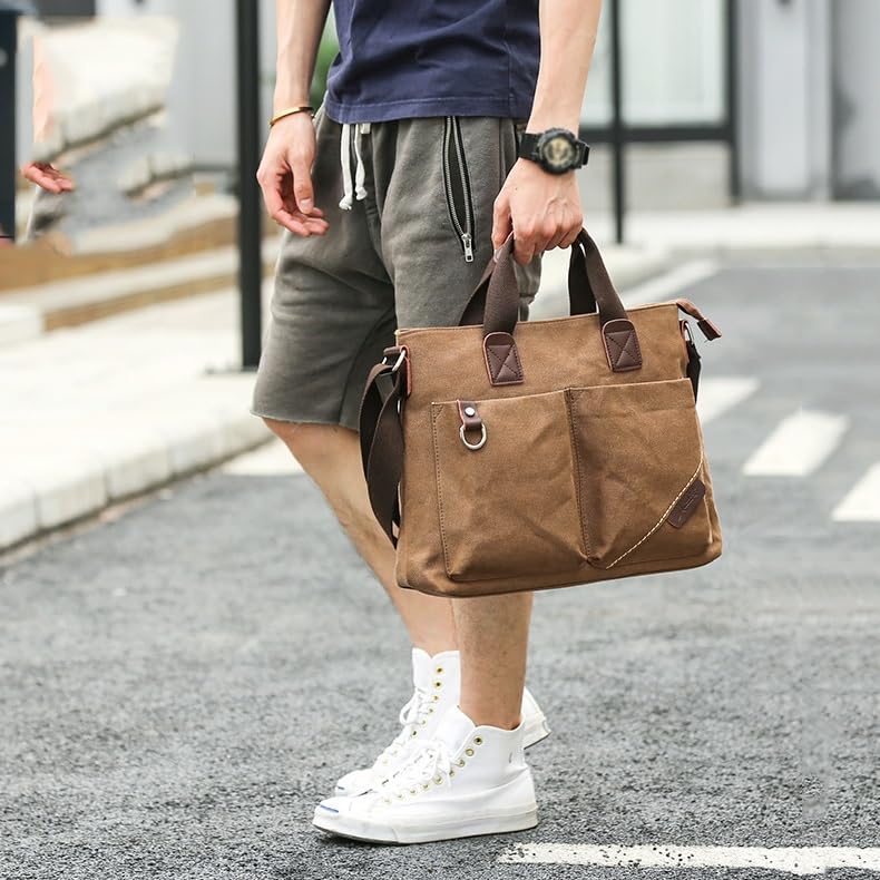 Men Washable Canvas Bag Leather Briefcase Travel Suitcase Messenger Shoulder Tote Pack Handbag 1