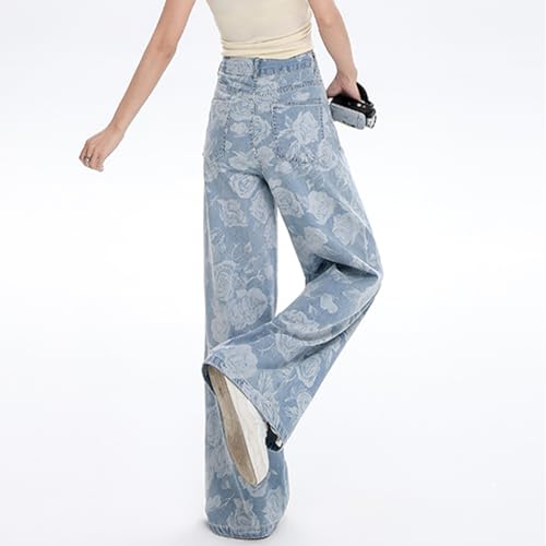 HOT ! Fashion Casual High Waisted Straight Leg Jeans for Woman Y2K Cute Floral Printed Waist Drawstring Denim