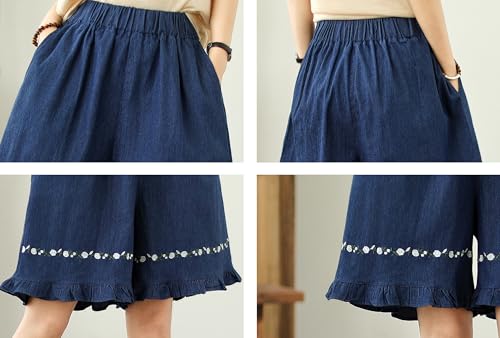 More information about LAI MENG FIVE CATS Women's Summer Loose Casual Jeans Elastic Waist Wide Leg Denim Short Pants