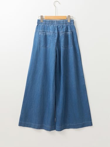 HOT ! ebossy Womens Button Wide Leg Jeans Elastic Waist Casual Baggy Loose Palazzo Denim Pants with Drawstring