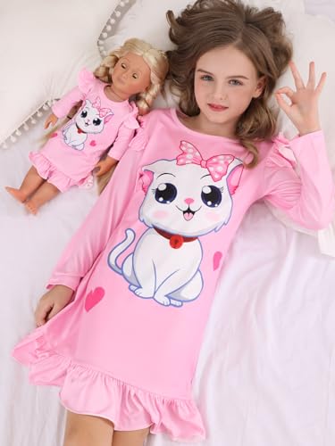 Bow Dream Toddler Girls Casual Dress Pink Cat Cute and Matching American Girl Doll Clothes for Girls 7