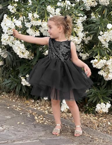 AGQT Baby Girls Dresses Flower Girl Dress Sequins Tutu Dress Sleeveless Kids Princess Birthday Dresses 3