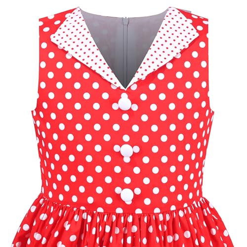 • This girls' dress is a sleeveless style with a charming V neck. It features a retro black and white polka dot pattern. The front is adorned with buttons, adding a touch of detail. Two cute pockets with white trim enhance its functionality and style. It's perfect for everyday wear, such as going to school, picnics, or family outings. Additionally, it can be worn for special occasions like birthday parties, holiday celebrations, or photo shoots.