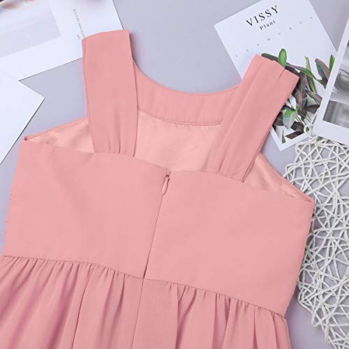 Kids Big Flower Girls Wide Straps Chiffon Pleated Dress Wedding Bridesmaid Formal Birthday Party Dress Ball Gown 5