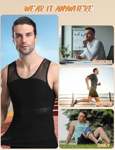 • 【SHAPE IN SECONDS】Our men compression tank top is designed to reshape your chest and belly from the visual, flatten your waist and tummy, straighten your back at the same time, offering you a fit looking and nice figure.