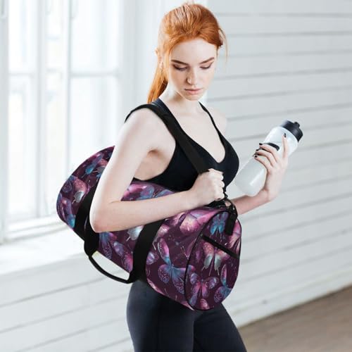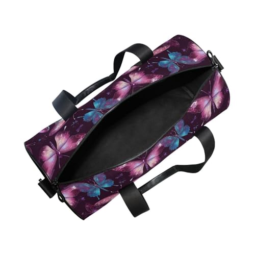 HOT ! Purple Butterfly Sports Duffel Bag Full Print Barrel Gym Bag with Adjustable Shoulder Strap, Multiple Pockets for Workout Travel and Sports Durable Polyester with Microfiber Leather Accents