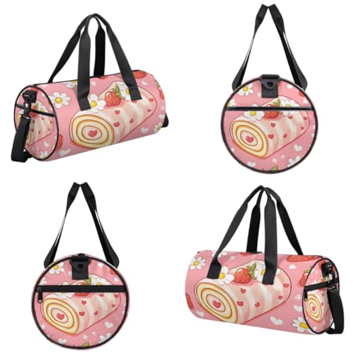 Swiss Roll Cake Round Barrel Sports Fitness Bag, Travel Luggage Bag, Reusable Handbag, Suitable For Men and Women 3