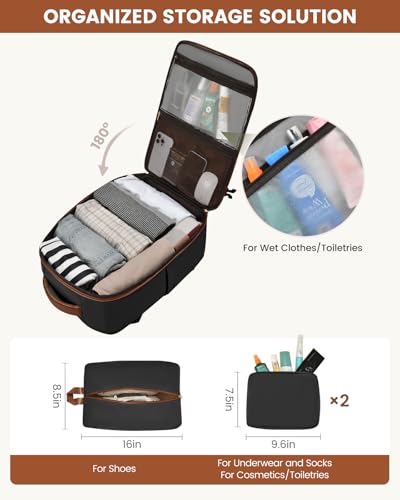 • 【Airline Approved】Sized at 19.5"x14"x6.5", this backpack fits both in overhead compartments and under airplane seats. It includes adjustable side buckles to compress volume as needed, and its 180-degree opening ensures easy and organized packing for seamless travel