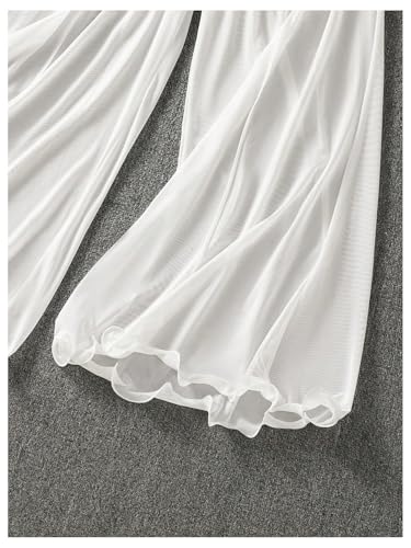 HOT ! OYOANGLE Women's Shirred High Waisted Sheer Pants Ruffle Flowy Wide Leg Palazzo Trousers