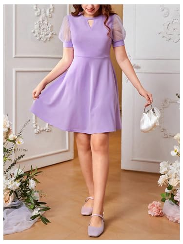 SweatyRocks Girl's Keyhole Puff Sleeve Dress Mesh High Waist A Line Party Dresses 5