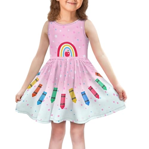 HOT ! Fashion Sleeveless Dress for Girls Loose Sundress Casual Crew Neck Dress with Pockets for Outdoor Activity