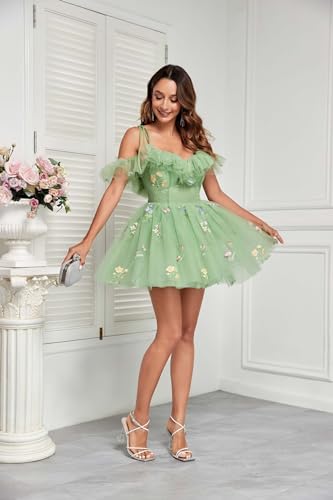 • 【Features】:Flower embroidery tulle homecoming dresses,short prom dresses,laces appliques,cold shoulder,spaghetti strps,plus size,high waist,zipper,a-line,above the knee length,Fully lined,built-in bra.