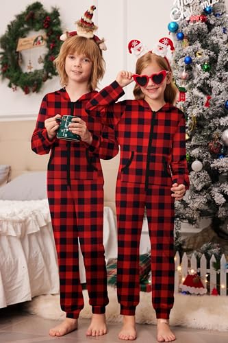 Ekouaer Christmas Matching Family Onesie Pajamas Hoodie One Piece Pajamas Zipper Thermal Sleepwear with Pockets Family Christmas Buffalo Plaid Print M 1