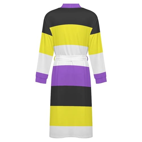 HOT ! Non-binary Flag Soft Robe Long Sleeve Bathrobes V Neck Sleepwear Spa Robes with Belt Men Woman
