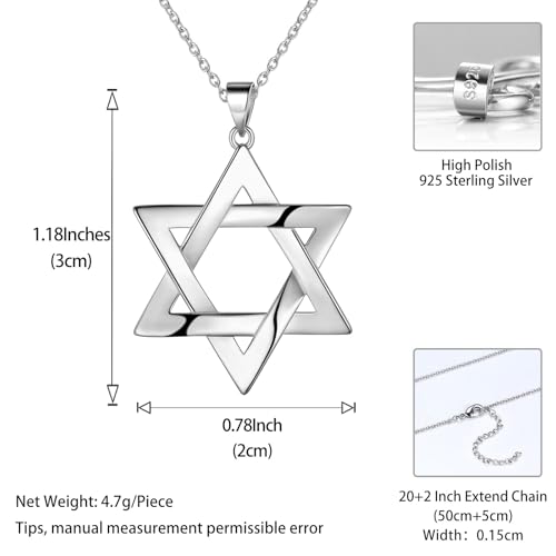 Jewmon 925 Sterling Silver Star of David Necklace for Women Mens Magen David Pendant Necklace Jewish Star Charm Necklace Gothic Isael Protection Jewelry 4